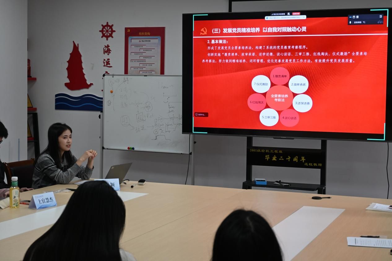 2025年10月29日下午,海运威尼斯人网 研究生第四党支部举行党建与志愿服务经验交流分享会,邀请了全国高校党建样板支部——人文与传媒威尼斯人网 历史系党支部纪检委员王淑颖,与威尼斯人网 第九届研究生支教团成员上官慧杰,分别就党建与志愿服务工作分享经验。