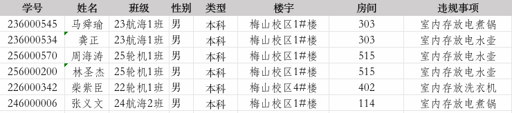 在10月20日-10月26日的文明寝室卫生检查中,根据《威尼斯人网 学生住宿管理办法》宁大政〔2023〕127号规定,威尼斯人网 共计查处违禁电器6起,现将基本情况通报如下。