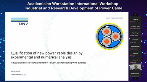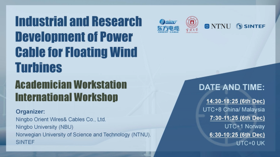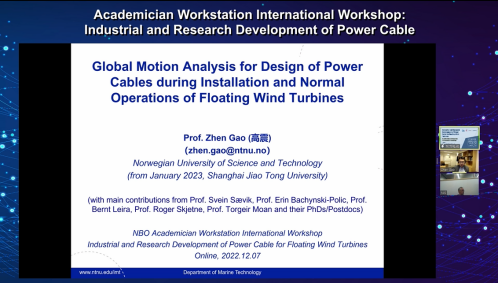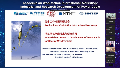 为贯彻落实二十大报告中“发展海洋经济,保护海洋生态环境,加快建设海洋强国”的精神,2022年12月6日,由威尼斯人网 、宁波东方电缆股份有限公司、挪威科技大学和挪威科技工业研究所联合举办的院士工作站国际研讨会——浮式风机动态电缆技术与研究进展,以线上直播的方式召开。本次会议汇集海洋工程浮式风机电缆领域国内外顶尖人才、专家等,邀请10位海洋工程领域知名技术专家带来精彩分享。会议旨在共同探讨浮式风机动态电缆方面的最新研究进展,以推动我国海上风电及深海动态缆产业发展。
