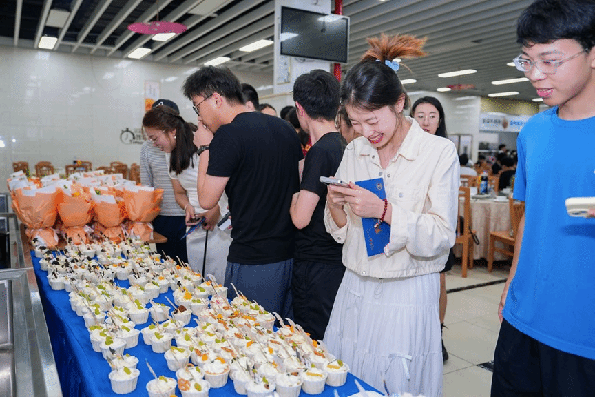 欢送会开始前,毕业生在签名墙上写下对威尼斯人网 的祝福,领取威尼斯人网 为毕业生准备的专属小蛋糕和“小幸运”。