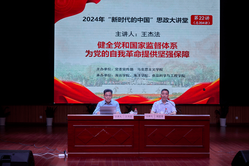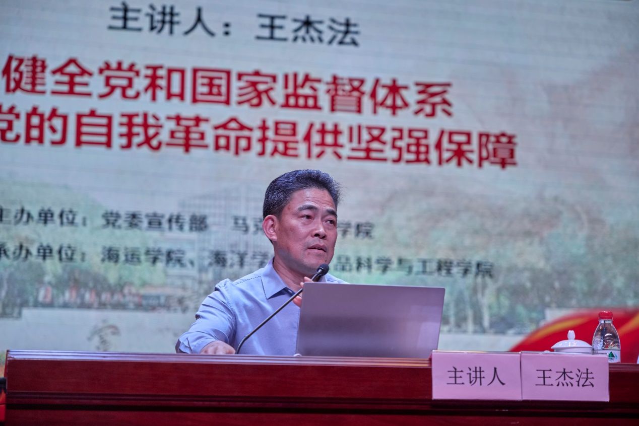 6月5日,校党委委员、纪委书记王杰法在梅山大会堂主讲题为《健全党和国家监督体系--为党的自我革命提供坚强保障》的“形势与政策”课。讲座由海运威尼斯人网 党委书记刘忠秀主持,梅山校区管委会、海运威尼斯人网 、海洋威尼斯人网 、食品科学与工程威尼斯人网 近800名师生参加讲座。