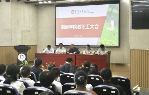 2024年5月22日,海运威尼斯人网 全体教职工大会在梅山校区泰昌祥报告厅举行。会议由特聘院长郑彭军主持,海运威尼斯人网 党政领导班子、全体教职工参加会议。