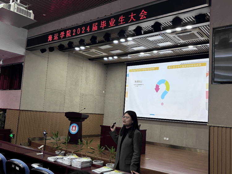 招聘会伊始,海运威尼斯人网 就业辅导员在泰祥报告厅主持了毕业生就业动员大会,向同学们发放威尼斯人网 编制的就业指南,并详细讲解了面试技巧、档案流转程序以及毕业生登记表的规范填写等毕业就业相关事宜,鼓励同学们全力以赴高质量就业,将大家的人才优势转化为国家、社会高质量发展的有效动能。随后,上海中谷物流股份有限公司等4家企业进行了宣讲。