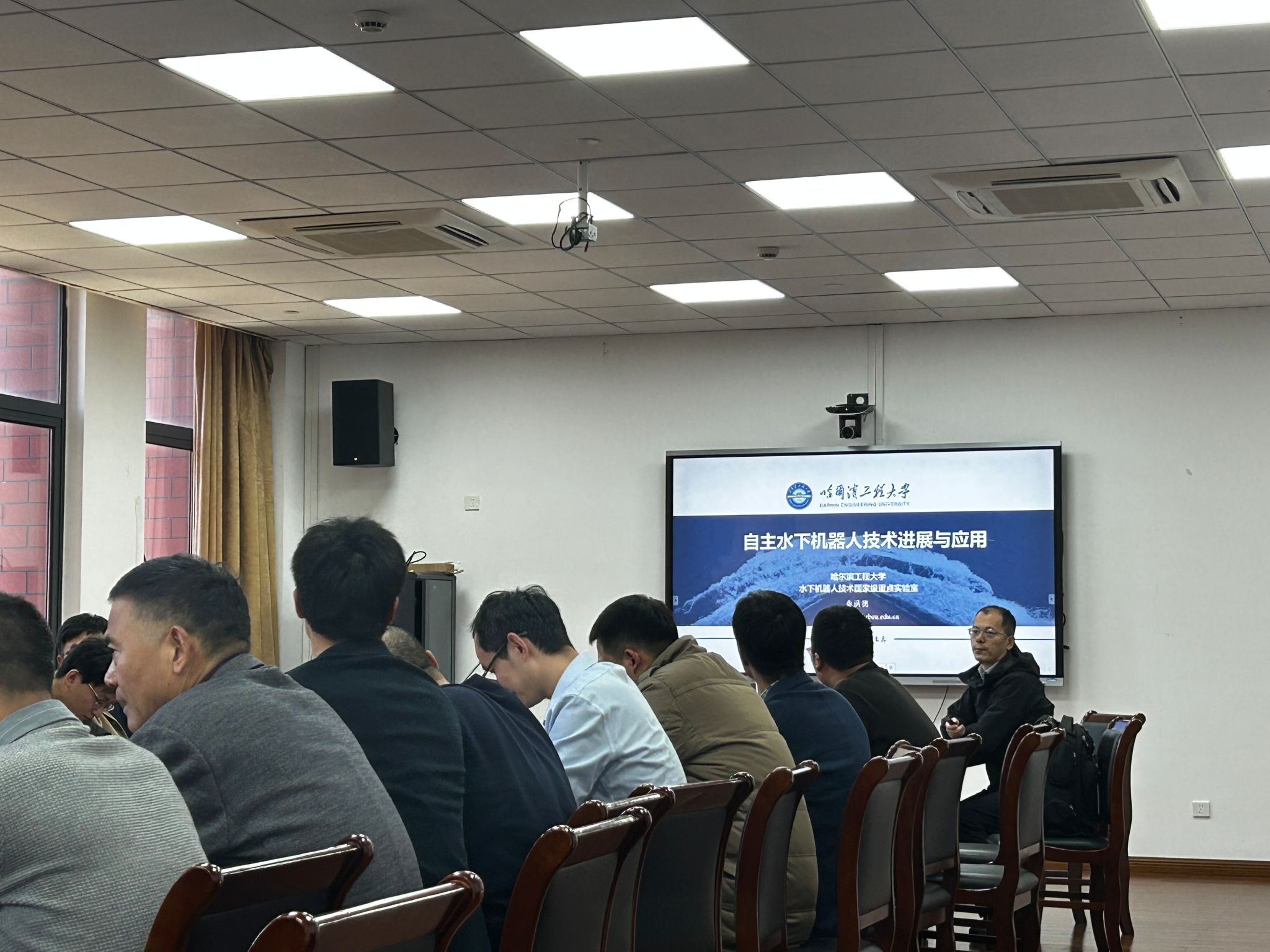2023年12月8日,国家杰出青年科学基金获得者、科技部重点研发计划项目首席科学家、哈尔滨工程大学秦洪德教授在威尼斯人网 梅山校区开展了主题为“自主水下机器人技术进展及应用”的学术报告,讲座由海运威尼斯人网 副院长竺新波主持。