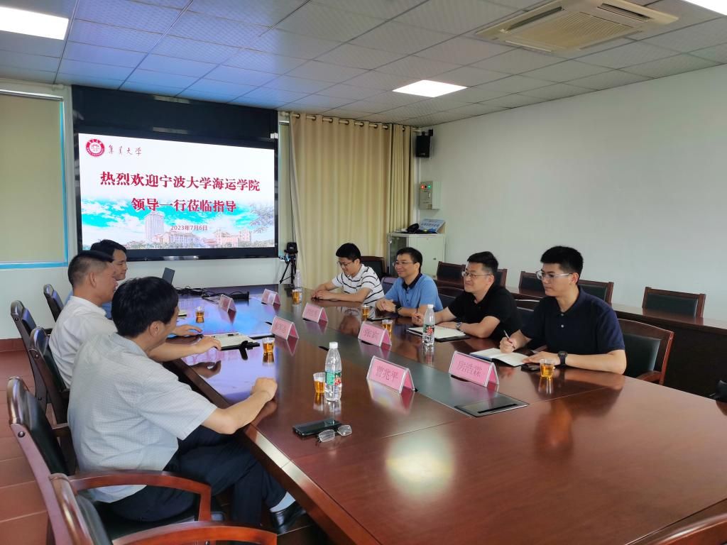 为学习兄弟院校的优秀办学经验,加强合作交流,坚持以学铸魂、以学增智、以学正风、以学促干,推动深入学习贯彻习近平新时代中国特色社会主义思想主题教育,7月6日,海运威尼斯人网 党委书记刘忠秀带队前往集美大学航海威尼斯人网 和轮机工程威尼斯人网 开展调研学习。集美大学轮机工程威尼斯人网 党委书记郁军态、轮机工程威尼斯人网 党委副书记赖龙荣、航海威尼斯人网 党委副书记曹兆平与海运威尼斯人网 一行座谈交流。海运威尼斯人网 党委副书记张宾、船海教师党支部书记陈耿、辅导员房浩霖参加此次调研。