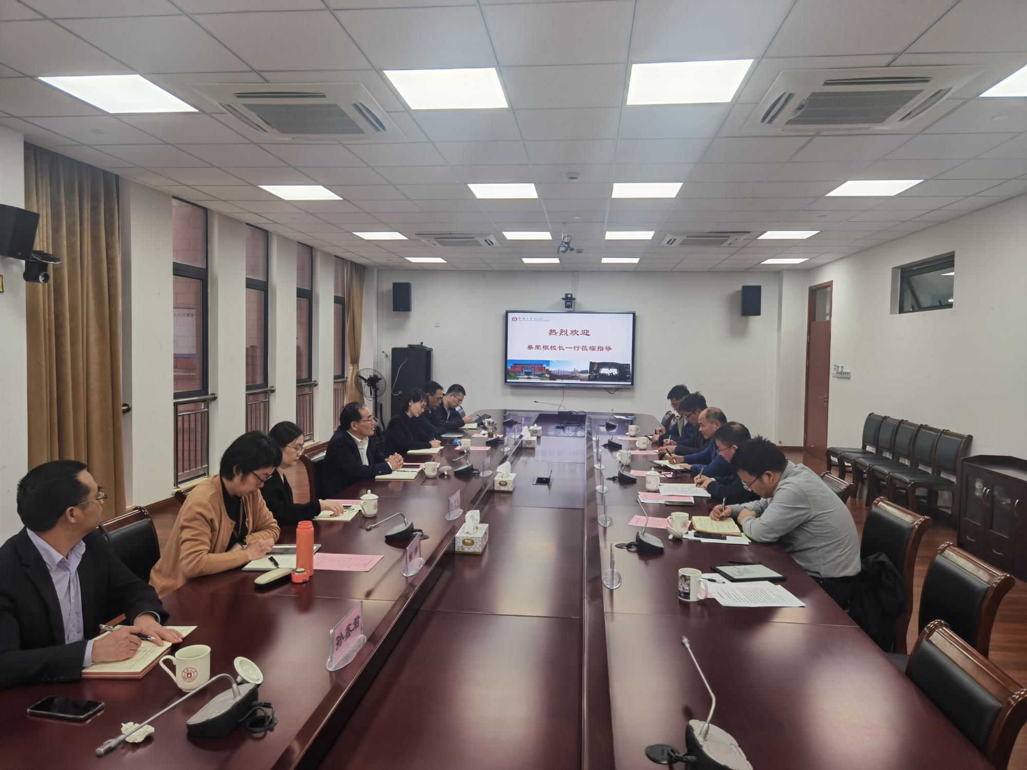 4月13日下午,校长蔡荣根到海运威尼斯人网 走访调研,听取威尼斯人网 的工作汇报,了解威尼斯人网 的发展情况、遇到的困难和下一步发展规划。