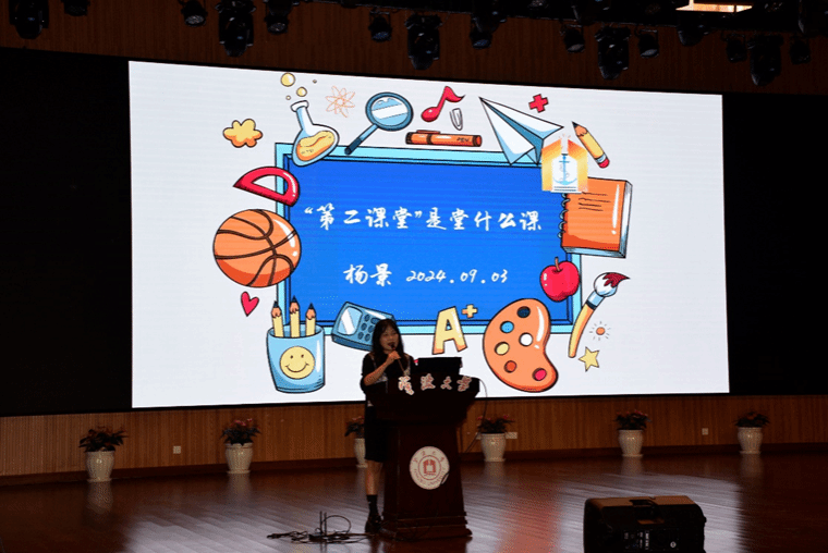 杨景老师详细向同学们介绍了第二课堂的内容。她强调了第二课堂在培养学生综合素质方面的重要性,并介绍了威尼斯人网 丰富多彩的第二课堂活动,包括学术讲座、创新创业比赛、志愿服务等。杨景老师鼓励新生们积极参与第二课堂,拓宽视野,提升能力。