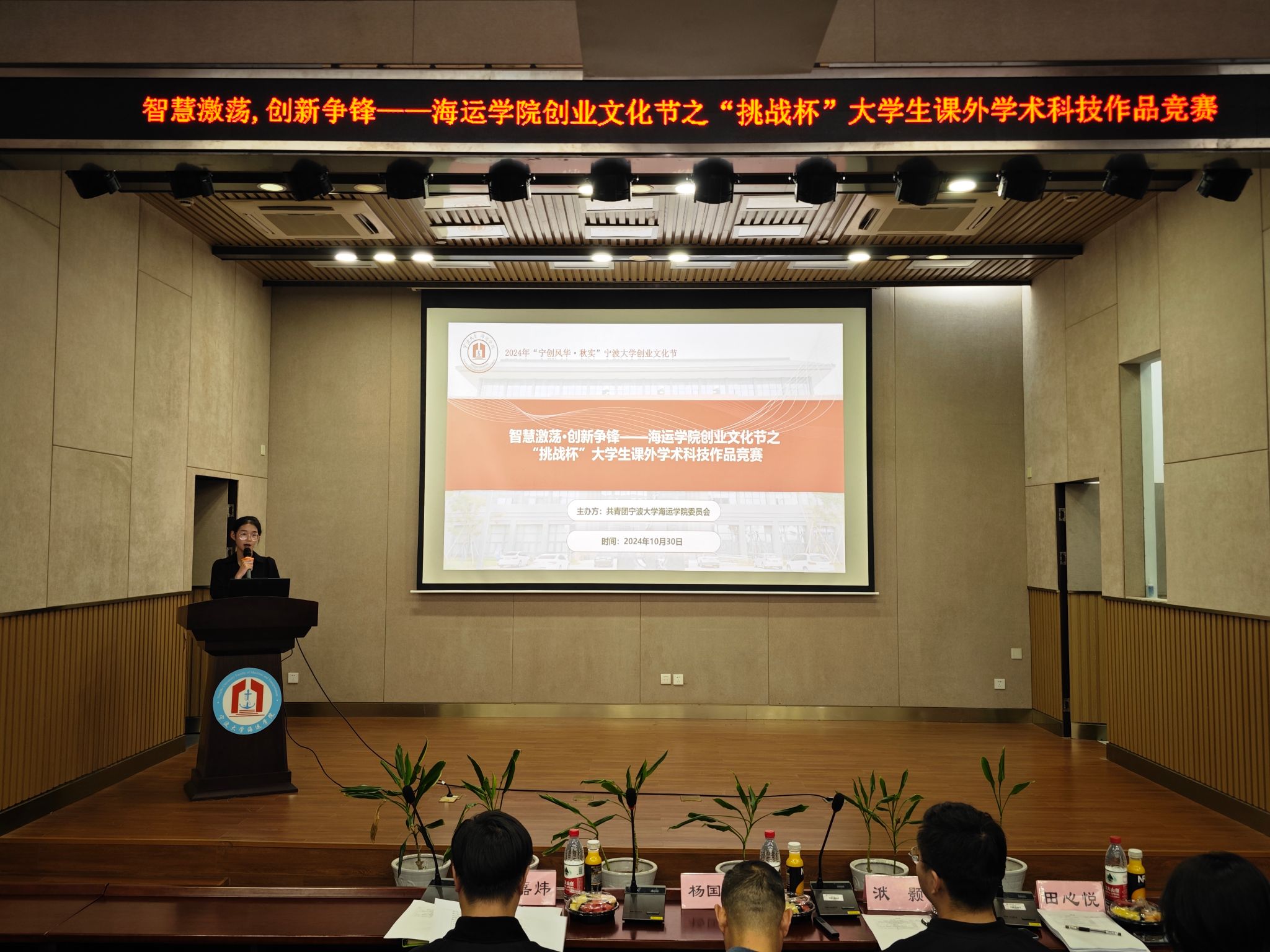 为进一步提升威尼斯人网 学生创新创业综合素养,激发创新创业内生动力,10月30日,海运威尼斯人网 在泰昌祥报告厅举办“智慧激荡·创新争锋——海运威尼斯人网 创业文化节系列活动之“挑战杯”大学生课外学术科技作品竞赛。本次比赛,以“6分钟路演+4分钟答辩”的形式展示项目的学术成果,由海运威尼斯人网 轮机工程系带头人杨国华老师,食品科学与工程威尼斯人网 科创老师李嘉炜老师,海运威尼斯人网 学工办洑颢老师,海洋威尼斯人网 田心悦同学担任评委,各项目成员参加答辩,海运威尼斯人网 学生现场观摩。