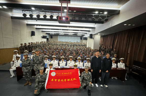 活动接近尾声,主持人组织全体人员在报告厅完成合影留念。学子们身着统一服装,有序排列,定格下这一充满集体荣誉感的瞬间。