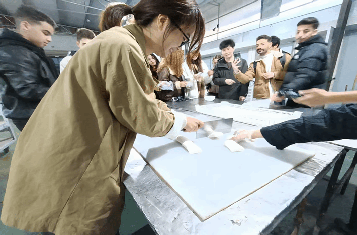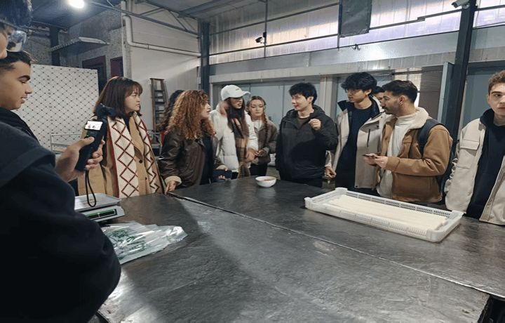 活动首站,师生们抵达梅山年糕厂。在工作人员的讲解下,同学们参观了机械化年糕生产的全流程,从洗米、蒸煮、压制成型到切割包装,每一环节都展现出现代食品加工的高效与卫生标准。同学们对自动化设备与传统美食的结合表现出浓厚兴趣,纷纷驻足观看、拍照记录。参观结束后,大家品尝了刚出炉的年糕,软糯香甜的口感赢得了国际学生的一致称赞,不少同学表示这是他们第一次亲眼见证年糕的现代化生产过程,对中国传统食品的现代传承有了全新认识。