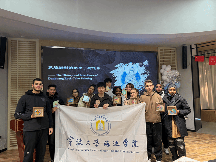 活动尾声,同学们将自己的完成的岩彩画作品小心翼翼地装入精美的相框。一幅幅充满异域风情又兼具个人特色的画作跃然眼前,成为他们此次中国文化体验的独特纪念品。大家手捧自己的作品,相互欣赏、拍照留念,脸上洋溢着满足与自豪的笑容。许多学生表示,这次活动非常新奇且治愈。“这不仅是一次艺术创作,更像是一次深度的冥想。在绘画的过程中,我感觉内心非常平静,也对中国敦煌文化有了更立体的认识。”物流管理专业学生丽莎如是说。