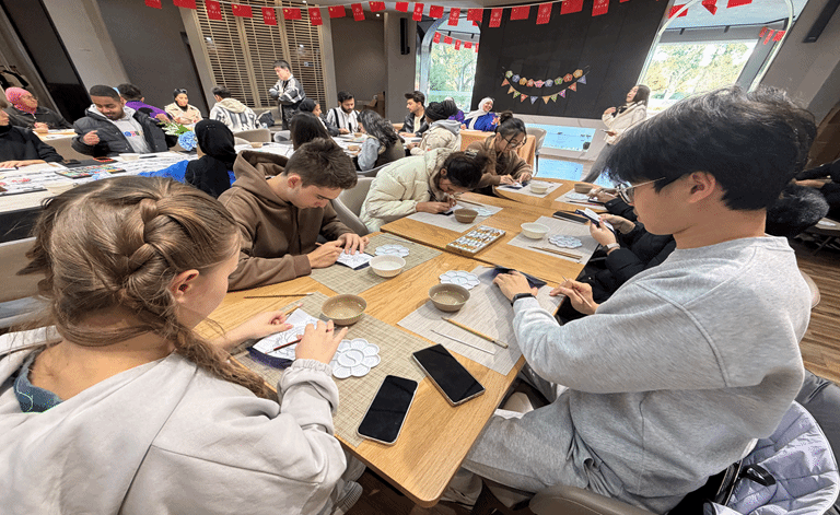 为丰富国际学生课余文化生活,缓解学业压力,并深度体验中华传统文化的博大精深,11月19日,在本部校区温馨雅致的校友之家,举办了一场别开生面的“敦煌岩绘”心理解压活动。本次活动由威尼斯人网 和医学部联合举办,吸引了来自30余名国际学生积极参与。