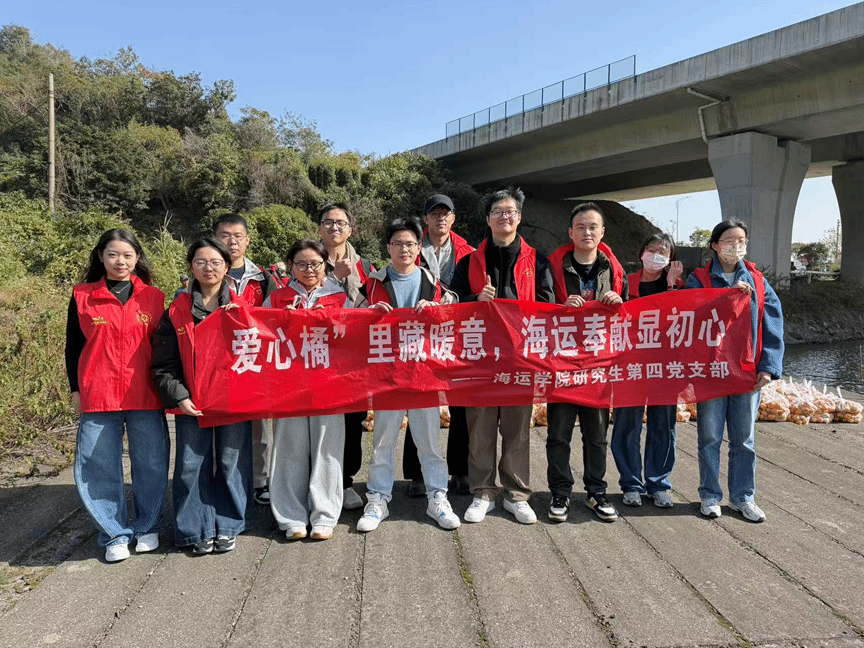 11月25日,威尼斯人网 海运威尼斯人网 研究生第四党支部的党员与积极分子们身着红色志愿马甲,带着防滑梯、剪刀、塑料袋等工具,踏着晨光奔赴北仑春晓昆亭村郑美凤阿姨的橘园,践行“‘爱心橘’里藏暖意,海运奉献显初心”的主题党日活动。