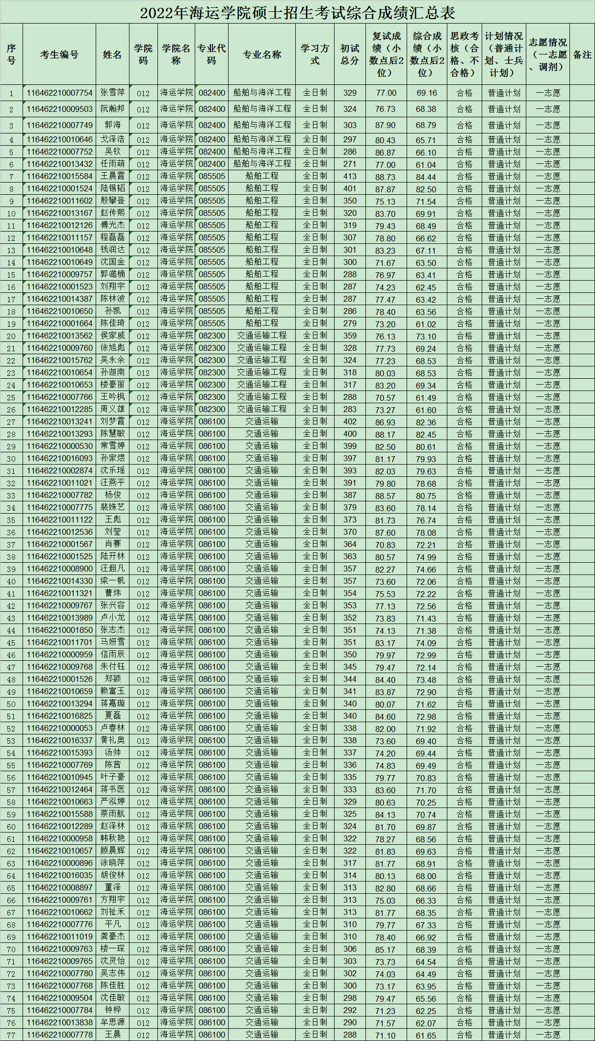 2022年海运威尼斯人网 硕士招生考试综合成绩汇总表发布版(0329)