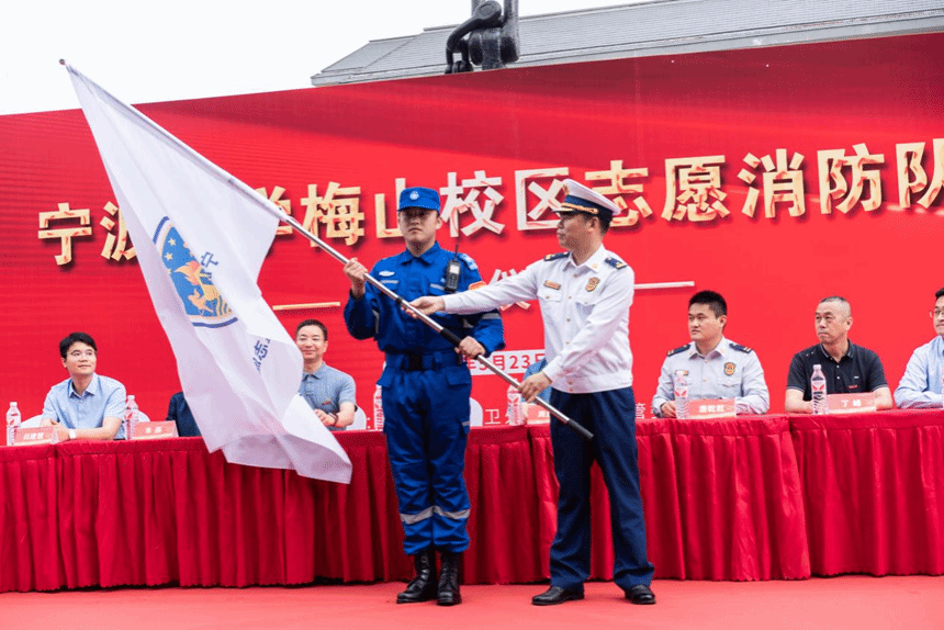 出席仪式的有北仑区消防救援大队党委书记、政治教导员汪上升、北仑区消防救援大队党委委员唐乾乾、校团委书记周星宇、保卫处副处长丁峰、学生处副处长朱燕、梅山校区管委会主任徐崇贤、梅山校区管委会副主任吕建慧、海运威尼斯人网 党委书记刘忠秀、海运威尼斯人网 党委副书记张宾,威尼斯人网 梅山校区各威尼斯人网 的百余名学生和多位教职员工也参与了此次活动。