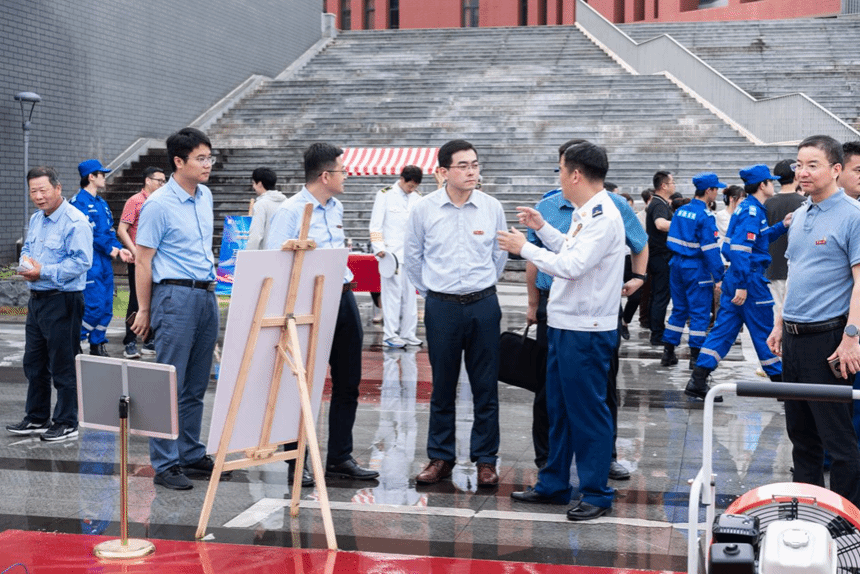 在应急消防演练环节,模拟了火灾事故发生的情景。志愿消防队迅速反应,按照预案与春晓消防站联合进行人员疏散、救援灭火、伤员救护及消防设施使用等演练,展示了他们扎实的消防技能和良好的火灾初期应急能力,配合北仑区消防救援大队圆满完成火灾救援。演练结束后,北仑区消防救援大队党委委员唐乾乾对演练进行了点评,对志愿消防队的表现给予了高度肯定,同时也提出了宝贵的建议。
